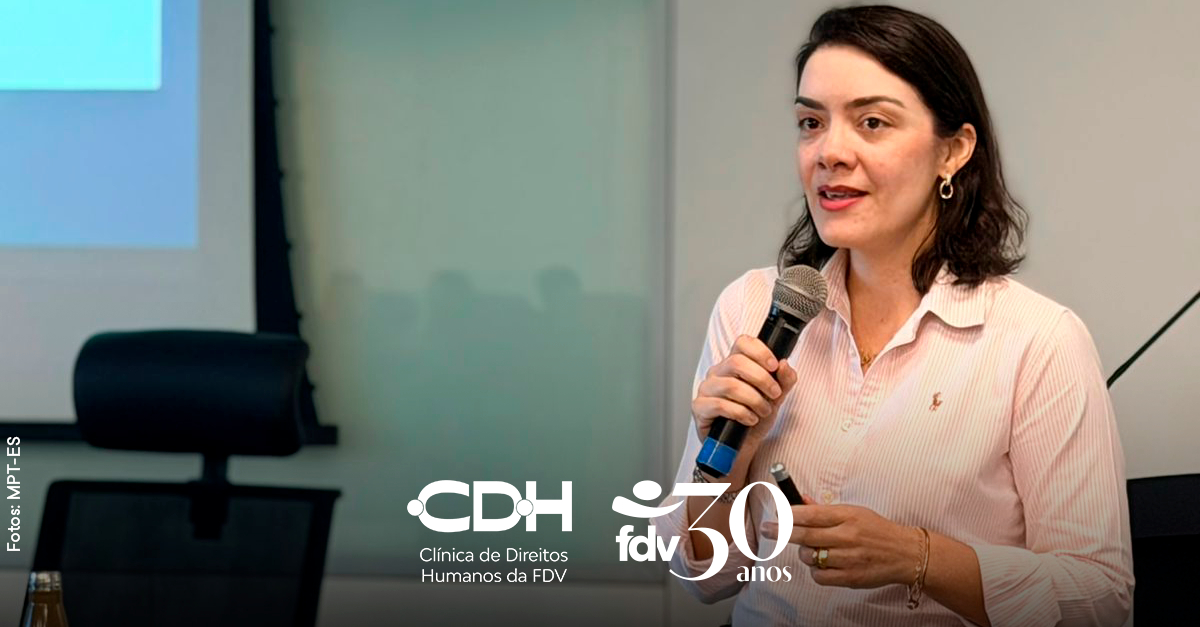 A Clínica de Direitos Humanos (CDH FDV) participou, no dia 30 de março, do seminário “Atuação em rede no combate e erradicação do trabalho escravo e enfrentamento ao tráfico de pessoas”, realizado na Escola Judicial do Tribunal Regional do Trabalho da 17ª Região, em Vitória.