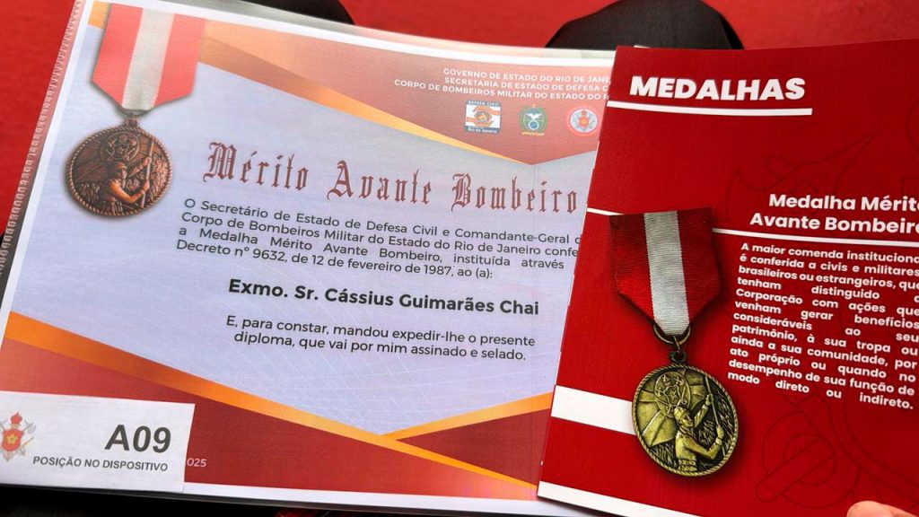 O professor da FDV e promotor de justiça Cássius Guimarães Chai recebeu a mais elevada comenda concedida pelo Comando Geral do Corpo de Bombeiros Militar do Estado do Rio de Janeiro (CBMERJ), em reconhecimento às suas contribuições institucionais, acadêmicas e ao trabalho dedicado à promoção da justiça, dos direitos fundamentais e da segurança pública.