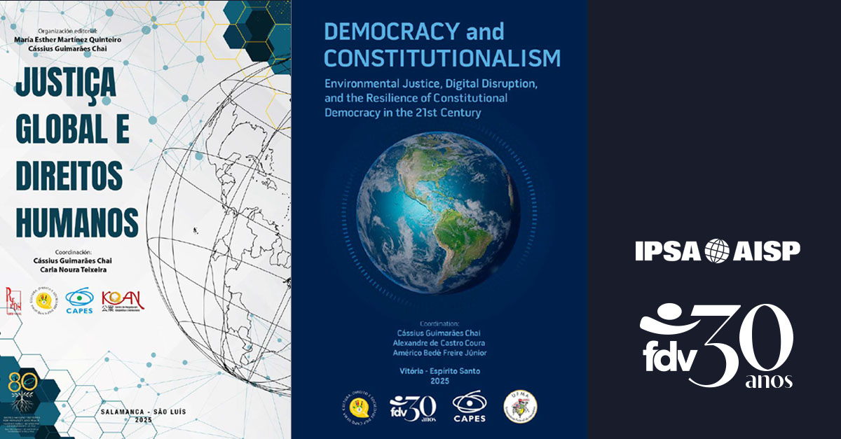 O livro Democracy and Constitutionalism: Environmental Justice, Digital Disruption, and the Resilience of Constitutional Democracy in the 21st Century, lançado nos dias 2 e 3 de outubro de 2025 durante a II International Conference – Democracy and Constitutionalism na FDV, aparece no site da IPSA com ficha técnica e organização dos professores do PPGD FDV Cássius Guimarães Chai e Américo Bedê Freire Júnior, e do professor Alexandre de Castro Coura.
