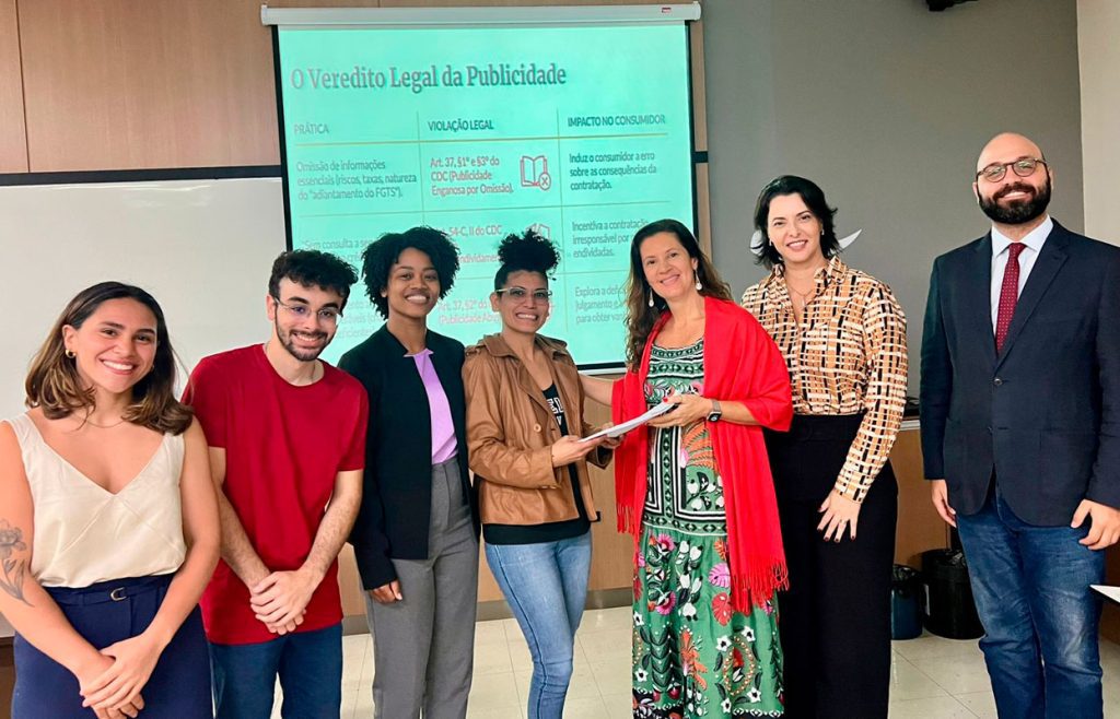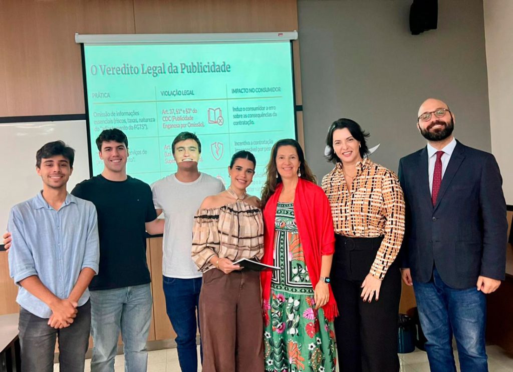 Os estudantes da disciplina Direito das Relações de Consumo, ministrada pela professora Ivana Bonesi, realizaram no dia 27/11, a apresentação final da atividade extensionista desenvolvida em parceria entre a FDV, o Ministério Público do Espírito Santo (MPES) e o PROCON-ES. A iniciativa teve como tema “Publicidade indutora de superendividamento e cláusulas abusivas em contratos de crédito”, envolvendo investigação de práticas reais do mercado capixaba que impactam diretamente o consumidor, especialmente grupos vulneráveis.