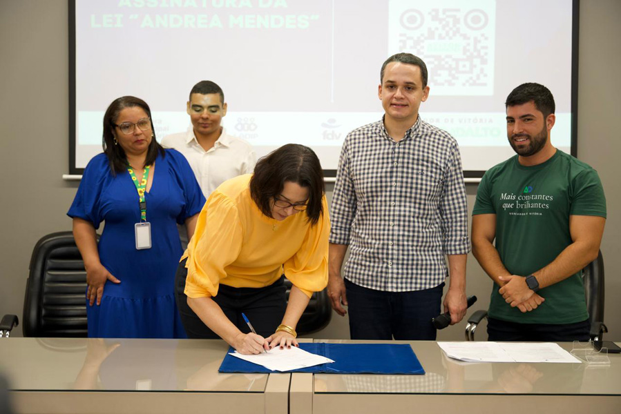 A sanção do projeto nas dependências da FDV evidencia a integração entre sociedade, Poder Público e faculdade e reforça o compromisso da instituição com a formação de juristas sensíveis às demandas sociais e capazes de contribuir para a construção de políticas públicas inclusivas.