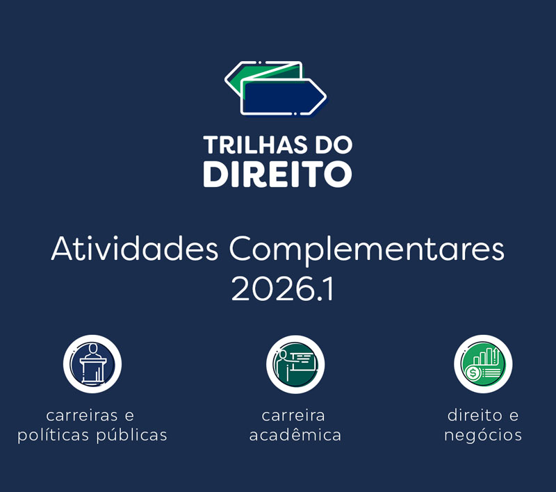 As atividades complementares das FDV são organizadas e categorizadas em trilhas de carreiras – as Trilhas do Direito – que ajudam o estudante a ter uma experimentação consciente das carreiras jurídicas, acelerando seu processo de autoconhecimento. Uma vez seguros da área que desejam seguir, é possível direcionar as escolhas das atividades para complementar o currículo do curso com uma formação especializada que vai ajudar a impulsionar a carreira ainda durante a Graduação.